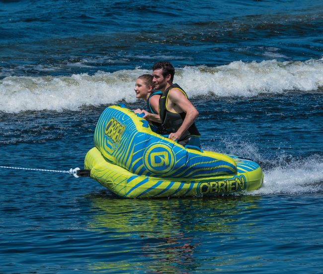 With the ability to be towed in two different directions, you are guaranteed to have a ball on the O’Brien Baller 2. By accommodating up to two riders, you and your friend will have a blast getting swung around while sitting with your back against the rear support. When you are ready for a change, just disconnect the rope from the quick connect hook, rotate the tube 180º and connect the rope to the other tow hook. Now you can ride the tube like it is your own personal chariot. Thanks to the smooth SofTec deck, the Baller series tubes provide the most comfortable ride of any tube in this category. The soft, seamless material prevents any uncomfortable rubbing and eliminates the potential for abrasion so you can ride all day long.